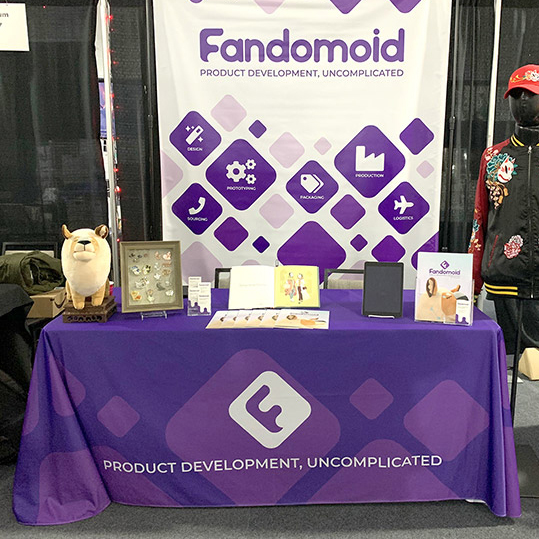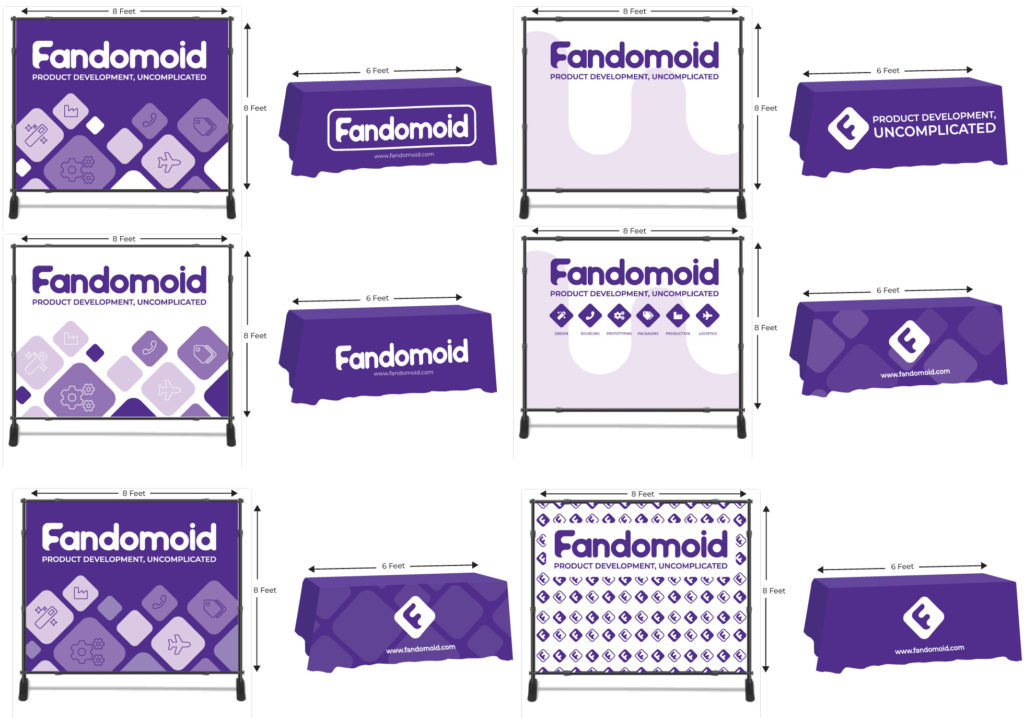 Fandomoid is a start-up helping artists design, develop, and manufacture their unique products. I was approached because they required branding for an upcoming event. My work included designing tablecloths and backdrop designs.